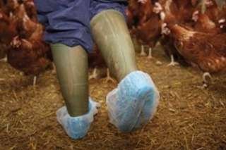 Testing chickens on a farm for both Salmonella and Campylobacter usually starts by collecting samples on boot swabs. These are fabric overshoes, worn over rubber boots while walking around the chicken house, picking-up pathogens in faeces and urine. The boot swabs are sent to a central laboratory for testing. The traditional method of analysis is classical microbiology – bacterial culturing that takes several days. More recently, molecular methods based on DNA detection have been introduced using real-time, or quantitative, PCR (qPCR). The qPCR method is much faster, taking hours instead of days. However, qPCR is still a laboratory-based method