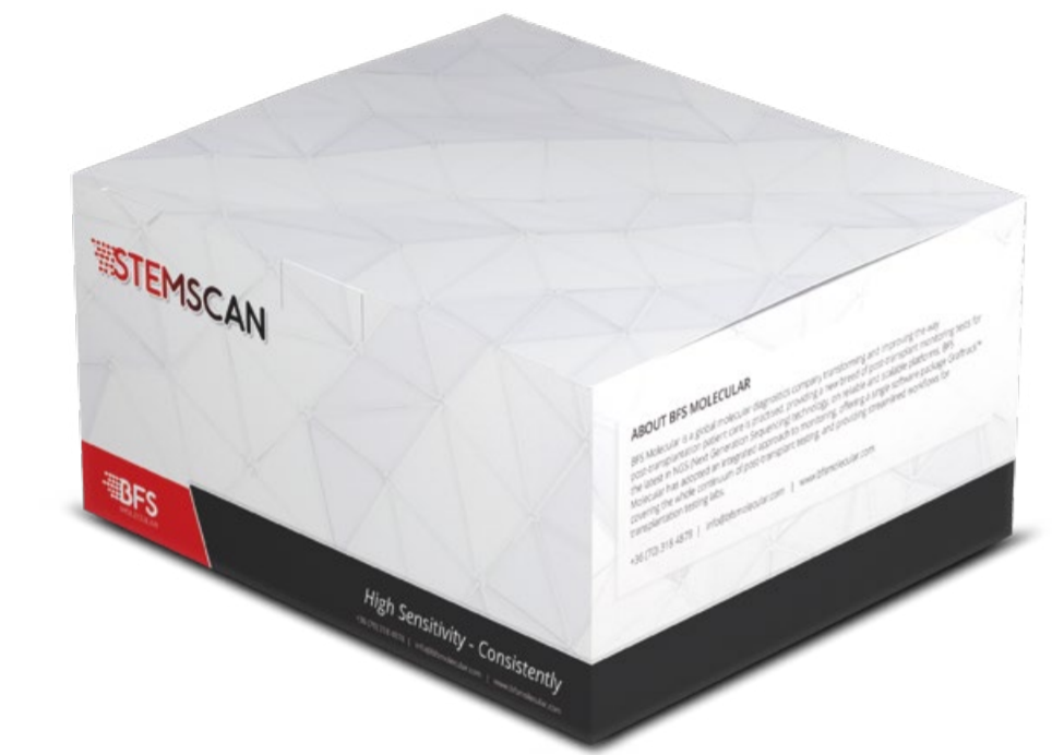StemScan™ is a laboratory assay and software kit that offers sensitive, comprehensive, and consistent post-transplant chimerism monitoring for allogeneic HSCT (Hematopoietic Stem Cell Transplant) patients. It can reach 0.1% sensitivity. For comparison, current gold standard forensic STR (Short Tandem Repeat) tests reach 1% sensitivity. The upshot is early detection, rapid intervention, and better patient outcomes.